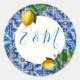 Sticker Rond Monogramme mariage citron bleu carrelage été