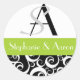 Sticker Rond Monogramme mariage damassé en noir et vert