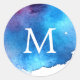 Sticker Rond Monogramme Mariage d'aquarelle bleu