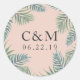 Sticker Rond Monogramme Mariage de feuillage tropical