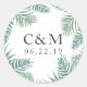 Sticker Rond Monogramme Mariage de feuillage tropical