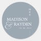 Sticker Rond Monogramme Mariage moderne Dusty Blue Chic Merci