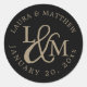 Les initiales de votre mariage ont été travaillées dans un monogramme, jointes par un ornement de script décoratif. Vos noms et votre date de mariage apparaissent en lettres blanches, courbées autour de l'extérieur.