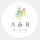 Des autocollants colorés pour sceller les enveloppes d'invitation ou pour vos faveurs, avec un bouquet fleur sauvage d'aquarelle avec des fleurs bleues, jaunes, violettes et roses, et vos initiales et votre date mariage.