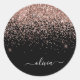 Sticker Rond Monogramme métallisé pailleté or rose Nom Glam