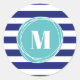 Sticker Rond Monogramme Moderne De Bleu Et D'Aqua