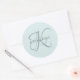 Sticker Rond Monogramme moderne élégant Script Aqua Blue