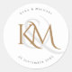 Sticker Monogram Gold Script Blanc Élégant Mariage Classic Round Sticker. Impressionnez vos invités avec ce design élégant et moderne à double monogramme mariage thème. Simple mais exsude le glamour et le luxe, ses caractéristiques intemporelles seront dernières pour toujours !
