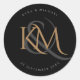 Sticker Rond Monogramme moderne Gold Script Noir élégant mariag