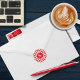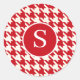 Sticker Rond Monogramme moderne Houndstooth Cherry Rouge & Blan