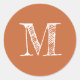 Sticker Rond Monogramme moderne Monogramme initial orange brûlé