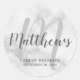 Monogramme personnalisé et nom de famille Favor Stickers disposent de nom de famille en gris style de police de script moderne et monogramme en gris clair style de police de script moderne comme arrière - plan avec détails en gris sans serif style de police sur arrière - plan de marbre blanc. Parfait pour les réunions de famille et les occasions spéciales.