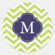 Sticker Rond Monogramme Motif de Zigzags Vert et Bleu