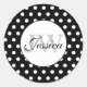 Sticker Rond Monogramme motif pois noir et blanc tendance