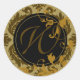Sticker Rond Monogramme néopolitain Damask "W" (céleri/moutarde