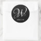 Sticker Rond Monogramme noir élégant personnalisé initial