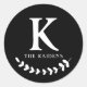 Sticker Rond Monogramme noir et blanc Nom de famille initial