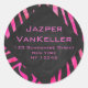 Sticker Rond Monogramme noir et rose chaud Zebra Design