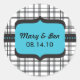 Sticker Rond Monogramme noir plaid et Mariage bleu