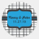 Sticker Rond Monogramme noir plaid et Mariage bleu