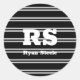 Sticker Rond Monogramme & nom blanc gras, lignes gris clair sur
