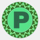 Sticker Rond Monogramme Nom initial lettre verte alphabet p