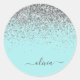 Sticker Rond Monogramme Pailleté Girly Bleu Sarcelle Aqua Argen