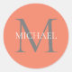 Sticker Rond Monogramme personnalisé et nom rose clair