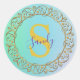 Sticker Rond Monogramme personnalisé Mandala Gold et turquoise