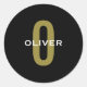 Sticker Rond Monogramme personnalisé Noir Or Blanc Nom