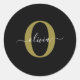 Sticker Rond Monogramme personnalisé Nom du script Black White