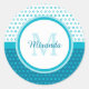 Sticker Rond Monogramme Pois bleu turquoise mod avec nom