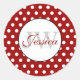 Personnalisez l'autocollant de fête de mariage avec votre initiale et votre nom. Motif rétro Cool adorable avec points blancs sur couleur rouge foncé personnalisable.