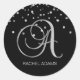 Éteignez-vous avec ces autocollants/étiquettes de classe et professionnels. Ajoutez-les à vos enveloppes, faveurs, cartes de voeux, etc...Lettre monogramme A en argent sur arrière - plan noir (l'arrière - plan peut être changé à n'importe quelle couleur).