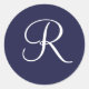 Sticker Rond Monogramme R, blanc sur bleu marine,