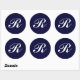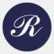 Sticker Rond Monogramme R, écriture blanche sur bleu marine