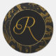 Sticker Rond Monogramme R Gold et Black Mariage damassé Seal