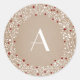 Un autocollant rustique monogramme illustrant une couronne blanche avec des baies rouges sur un arrière - plan inspiré de la carte. Personnalisez avec votre monogramme.