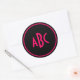 Design en cercle rose et noir clair. Pour recréer un monogramme avec ce style de police pour vos initiales, tapez les lettres minuscules, majuscules, puis minuscules à nouveau.