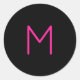 Sticker Rond Monogramme rose et noir moderne modifiable
