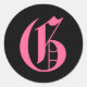 Choisissez votre initiale en lettres gothiques, vieilles en anglais dans un jeu de couleurs rétro rose et noir.