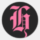 Choisissez votre initiale en lettres gothiques, vieilles en anglais dans un jeu de couleurs rétro rose et noir.