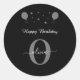 Sticker Rond Monogramme Script Joyeux anniversaire noir blanc g