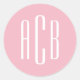 Sticker Rond Monogramme simple à trois lettres rose et blanc