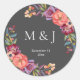Sticker Rond Monogramme Tropical Élégant Gris Bourgogne et Plum