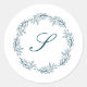 Sticker Rond Monogramme Turquoise Blue Wreath Classic Script Ma
