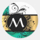 Sticker Rond monogramme turquoise vert et or