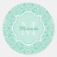 Sticker Rond Monogramme vert de menthe élégant avec nom