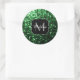 Sticker Rond Monogramme vert foncé faux parties scintillant sci