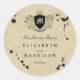 Ces autocollants sont parfaits pour tous les couples qui planifient une célébration de mariage romantique vintage. Le design est composé d'un arrière - plan de style ancien avec des taches d'encre noire et d'une crête vintage royale en monogramme. Le design simple peut être personnalisé pour convenir à votre événement spécial et sera la faveur parfaite pour toute fête à thème victorien, y compris : douches nuptiales, fiançailles, wedding showers, fêtes d'anniversaire et bien plus encore.